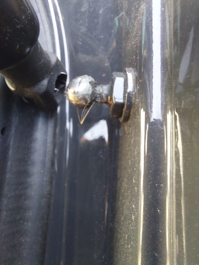 Üblicherweise sammeln sich über die Jahre Verunreinigungen und Abrieb an der Kupplung. Diese sind an der hervorstehenden Kugel deutlich sichtbar. Nutzen Sie ein Tuch oder eine Bürste und beseitigen Sie diese Rückstände. Die neue Gasfeder könnte sonst nicht sauber einrasten oder knirschende und kratzende Geräusche verursachen.